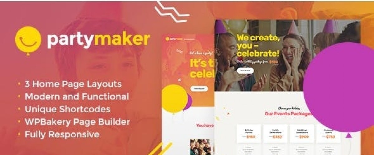 PartyMaker is an elegant 100% responsive Event WordPress theme. It has a trendy look crafted to build a website of event planners (both individual and agency), professional decorator and banquet manager. Also It is perfectly suitable for a wedding planner, planner of special occasions and special moments like birthday, anniversary, engagement party or any other events.