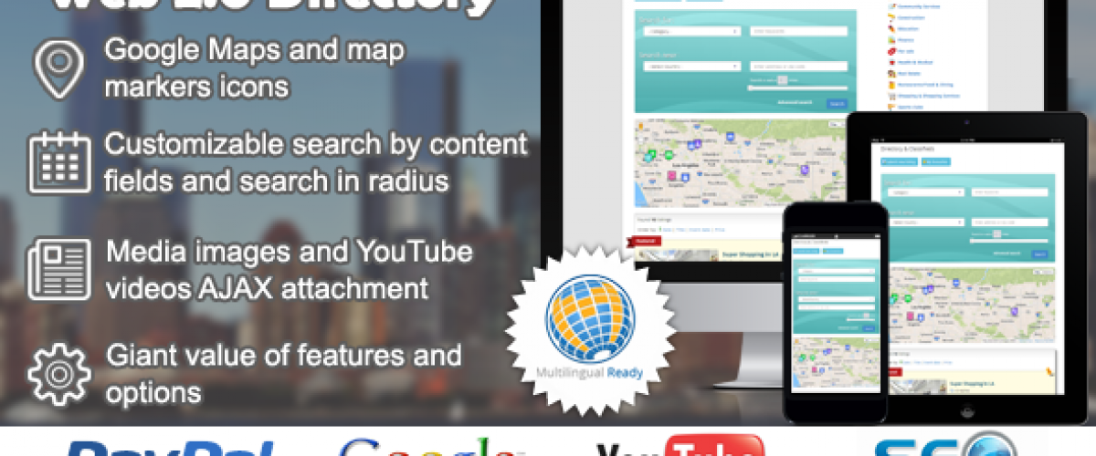 Web 2.0 Directory plugin provides an ability to build any kind of business directory site: classifieds, events directory, cars, bikes, boats and other vehicles dealers site, pets, real estate portal, wedding site, yellow pages. In other words – whatever you want.