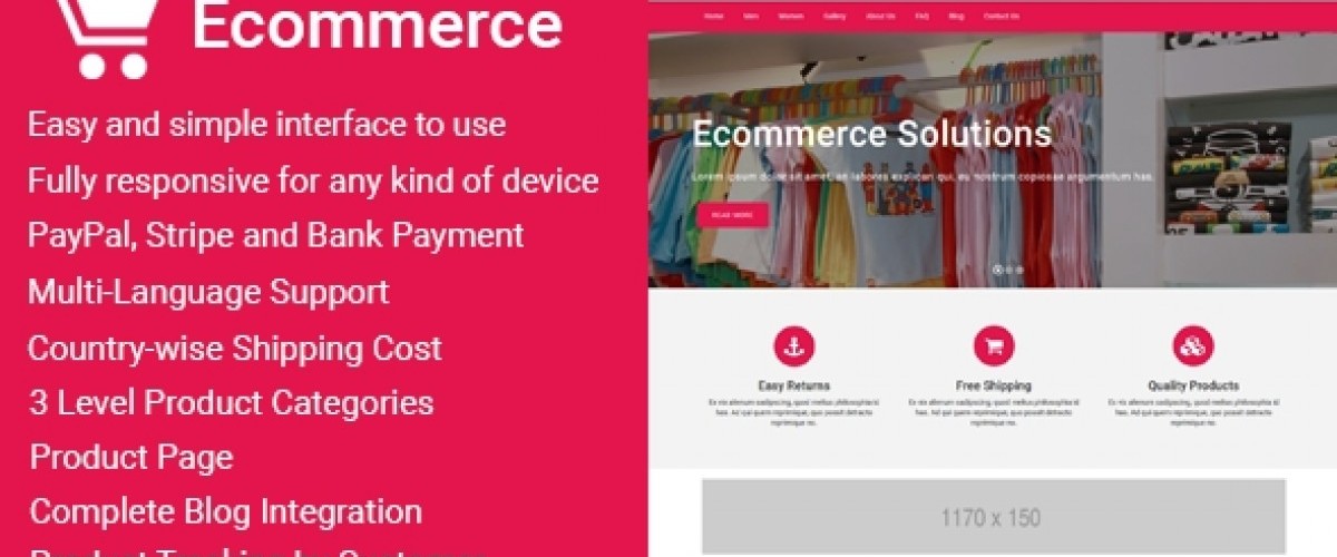 Ecommerce is a complete and responsive ecommerce Content Management System (CMS) for your online business. This online store will help your customers to easily purchase products from your store easily by means of PayPal, Stripe and Bank Payment system. Users can search for any products and add products to their cart before purchasing by choosing size and color of a product. You also can use this online ecommerce script for any kind of online stores (you can select your own products from admin panel).
