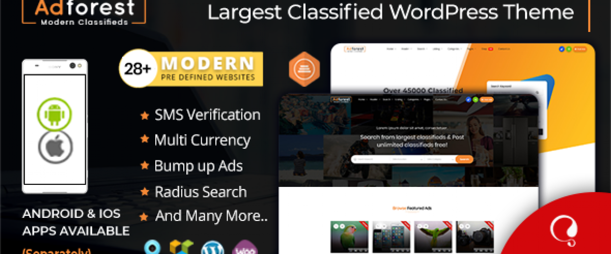 AdForest is one of the leading and the best Premium Classified Ads WordPress theme with outstanding front-end UI. Get ad posting WordPress theme with different color options and with awesome Wp functionality. Google map is also integrated in WordPress ads theme. Our WordPress classifieds theme usability and overall user-experience is according to modern Era. If you want your classified business stand out from the crowd AdForest is the one stop solution to start and make it easy to sell your products online.