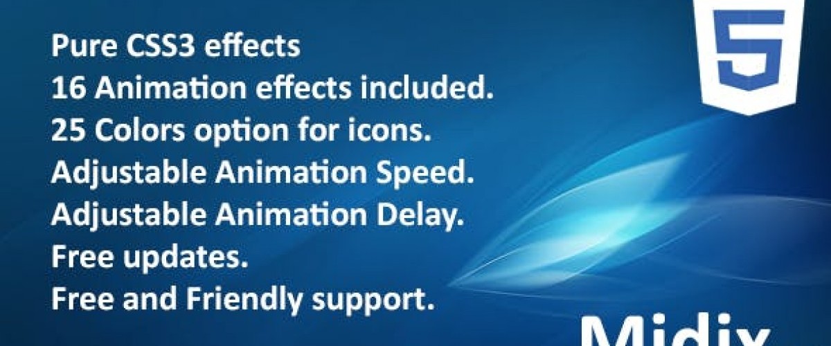 Midix is a package that contain infinite font awesome icon with pure css3 animation and with adjustable speed and delay of animation to start. It’s a very good way to attract users toward a specific area.CSS3 provides very light weight and smooth animation effect without any java script and jQuery.