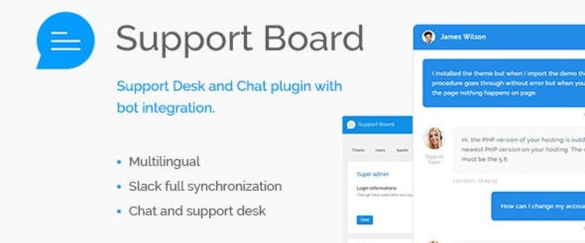 Support Board is a powerful solution to communicate with your users. Complete tickets system, chat, dedicated membership system and much more. Support desk and chat plugin for PHP. A complete solution to provide support to your audience. The first PHP plugin with a complete bot integration powered by API.AI by Google. The first PHP plugin with a full Slack integration for read and send messages directly from Slack. The cheapest and best Slack integration.