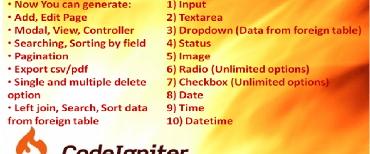 Demo CodeIgniter CRUD Generator v1.0?