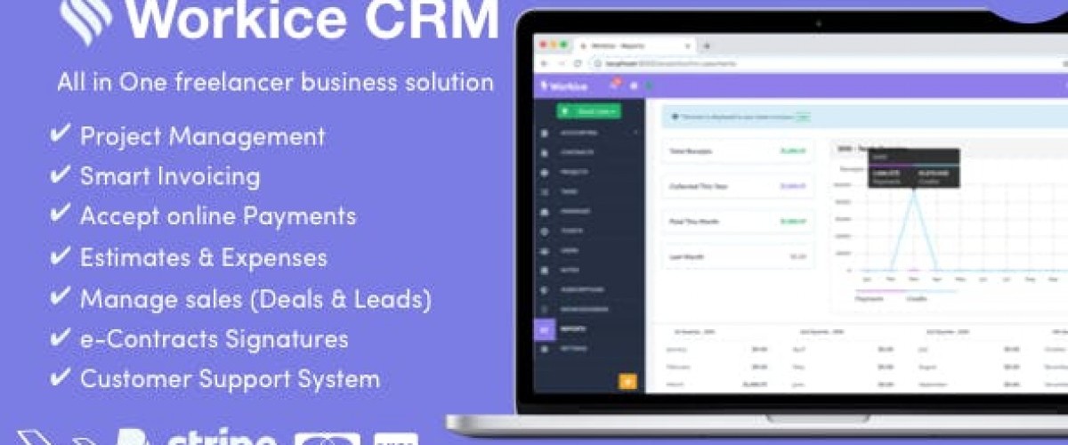 Workice CRM is a web based invoicing and projects management tool for freelancers and small businesses. Create and send invoices, estimates, track time or expenses and accept online payments.