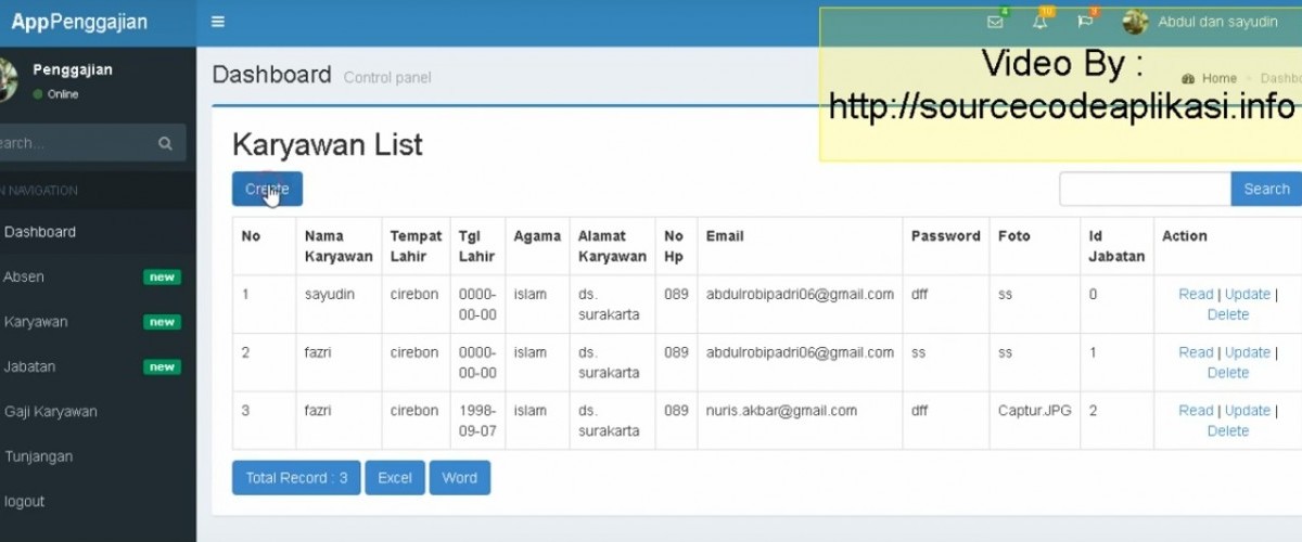 Deretan proses yang ada dalam aplikasi penggajian dan absensi karyawan berbasis codeigniter ini dapat anda lihat langsung pada demo di bawah ini :