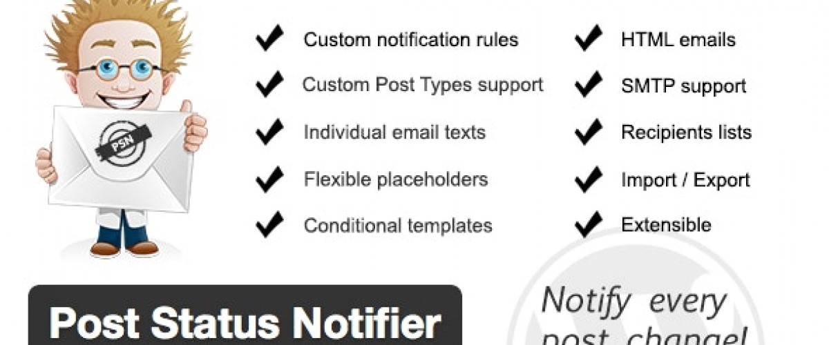You want to be notified when one of your contributors submitted a new post for revision or an editor published one? Vice versa you want to notify your contributors when their posts got published? This is just the beginning of what you can achieve with Post Status Notifier (PSN)!